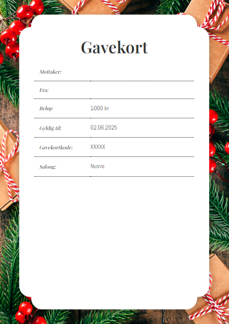 Når du kjøper et gavekort, får du umiddelbart en e-post med en magisk kode på PDF. Du kan enkelt printe ut gavekortet eller notere ned koden og lage ditt eget personlige gavekort. En rask og fleksibel måte å glede noen på!